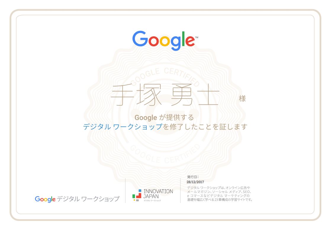 Googleデジタルワークショップに合格しました